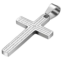 JewelryWe Schmuck Edelstahl Bibel Gebet Kreuz Anhänger mit 55cm Kette, Halskette für Herren Damen, Silber