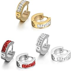 JewelryWe Schmuck Herren Damen Ohrringe, Edelstahl Strass Poliert Creolen Ohrstecker, Gold Rot Silber