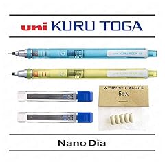 Uni-Ball Selbstschärfender Druckbleistift, 0,5 mm, mit Kuru-Tonga-Mechanik, blaues und grünes Gehäuse - 2 Stück + 24 Ersatzminen und 5 Radiergummis