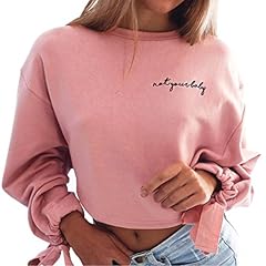 Internet Damen Beiläufige Lange Hülsen Bandge O Ansatz Kurzschluss Sweatshirt Oberseiten Bluse (S, rosa)