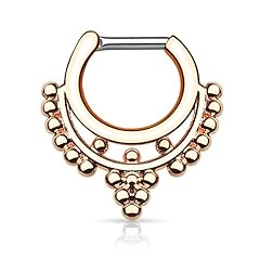 Piercingfaktor Universal Piercing Septum auch für Tragus Helix Ohr Nase Lippe Brust Intim - Schild Clicker Ring Tribal Traube Roségold 1,2mm