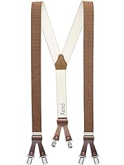 Xeira Herren Hosenträger mit 6 Clips und Lederriemen Braun Bordeaux Punkte 867 One Size (Normale Länge)