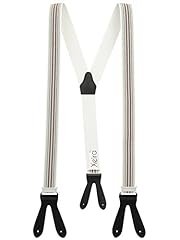 Xeira Hochwertige Hosenträger mit Lederriemen - Verfügbar in vielen Gestreiften/Punkte Design - Made in Germany (Grau/Rot - 1004)