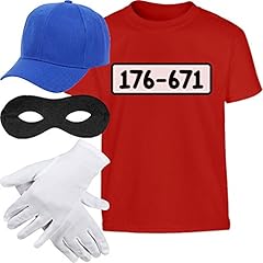 Kids Panzerknacker KOSTÜM + MÜTZE + Maske + Handschuhe Kinder T-Shirt 13-14 Jahre (164cm) Rot