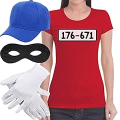 Panzerknacker Banditen Bande Kostüm Shirt + MÜTZE + Maske + Handschuhe Frauen T-Shirt Slim Fit X-Large Rot