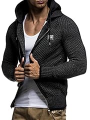 Leif Nelson Herren Kapuzenpullover Strickjacke Hoodie Pullover mit Kapuze Sweatjacke Sweater Zipper Sweatshirt LN7055; Größe L, Schwarz-Anthra