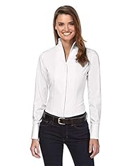 Vincenzo Boretti Damen Bluse mit Kelchkragen leicht tailliert 100% Baumwolle bügelleicht Langarm Hemdbluse mit Stehkragen elegant festlich auch für Business weiß 36