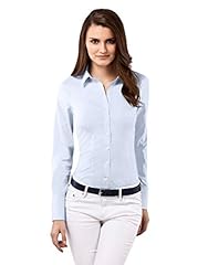 Vincenzo Boretti Damen Bluse besonders tailliert mit Stretch Langarm Hemdbluse elegant festlich Kent-Kragen auch für Business und unter Pullover eisblau 36