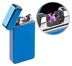 PEARL Lichtbogenfeuerzeug: Elektronisches Feuerzeug mit doppeltem Lichtbogen, Akku, USB, blau (Tesla Feuerzeug)