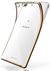 MoEx® Transparente Silikonhülle im Chrome-Style kompatibel mit Sony Xperia M5 | Flexibler Schutz mit Hochglanz Metallic Rahmen, Gold