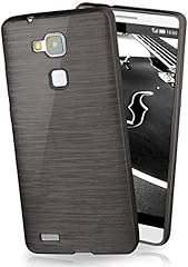 MoEx® Stylische Brushed Aluminium-Optik & starker Grip | Ultra dünne Silikonhülle passend für Huawei Mate 7 in Schwarz