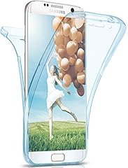 MoEx® Beidseitige Silikonhülle [Vorder + Rückseite] passend für Samsung Galaxy S6 Edge | 360 Grad Cover mit Komplett-Schutz - durchsichtig, Türkis