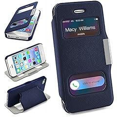 MoEx Apple iPhone 5S | Hülle Dunkel-Blau mit Sicht-Fenster Window Cover Schutzhülle Ultra-Slim Handyhülle für iPhone 5/5S/SE Case Flip Handy-Tasche Stand-Funktion