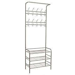 HOMFA Garderobenständer Kleiderständer 3 Ablagefächer Schuhablagen mit 20 Garderobenhaken,68.5x34x190cm (Champagnerfarbe)
