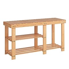 HOMFA Schuhregal Bambus Schuhbank mit 3 Ablage Sitzbank für Flur Schuhablage 86x28,5x45cm
