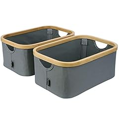 Homfa 2er Set Faltbar Aufbewahrungskorb Aufbewahrungsbox mit Griffen aus Bambus und Oxford-Tuch Grau 38x26x16cm Ordnungsbox Regalbox Faltbox Spielzeugkorb Filzkorb
