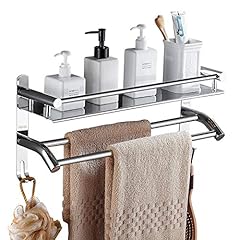 Homfa Bad Regale Edelstahl Duschregal Mit Handtuchhalter Ohne Bohren doppelten Badetuchstangen mit Haken für Badezimmer und Küchen 50 * 23 * 14 cm