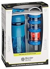 BlenderBottle Combo Pak - Sportmixer Shaker 820 ml Fassungsvermögen und GoStak Starter 4Pak mit Henkel in einer attraktiver Geschenkverpackung, cyan