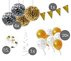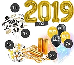 Silvester Party MEGA set 2019 Dekoration Deko - über 100 Teile - Fotorequisiten,Masken, Konfetti, Sterne, gold u. silber Ballons,Riesenballon, Luftschlangen für Neujahr, NEW YEAR / Silvester 2019