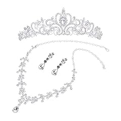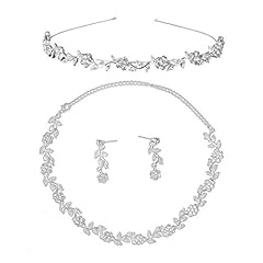 ROSENICE Hochzeit Schmuck Set Kristall Diademe Silber Blume Blatt Halskette Ohrringe Set