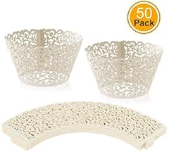 ROSENICE Hochzeit Cupcakes 50PCS Laser schneiden Cupcake Wrapper Muffinhalter Fall für Hochzeits-Geburtstagsfeier-Babyparty (cremeweiß)