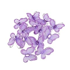 ROSENICE 50 Stück künstliche Schmetterlinge, Sheer Mesh Wire Glitzer Schmetterling (lila)