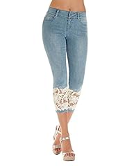 ShallGood Damen Capri Jeanshosen Sommer Skinny Spitze Denim Stretch Hosen Hohe Taille 3/4 Länge Leggings Spitze Hosen
