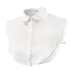 Wearlizer Frauen Kragen Abnehmbare Hälfte Shirt Bluse mit Strass Weiß (Chiffon Perle Strass)