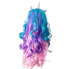 Gazechimp Damen Perücke Kunsthaar Lang Gelockt Welle Wigs - bunt mit Silber Horn