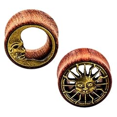 Longbeauty 4er Set Holz Flesh Tunnel Plugs Sonne&Mond Stil Ohr Expander Schmuck 10mm