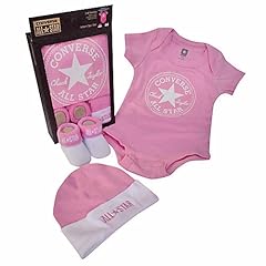 Converse Babykleidung Set Erstausstattung Baby Geschenkset Body Strampler Mütze Socken 3er Gift Set Pink Gr. 0-6 Monate