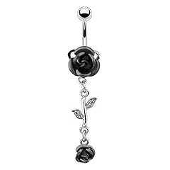 Piersando Bauchnabelpiercing Piercing Bauch Banane Stecker 316 L Chirurgenstahl Stab Gebogen mit Rosen Blüten Anhänger Schwarz