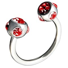 Piersando Piercing Hufeisen Septum Ring Kugel mit Kristallen für Tragus Helix Nase Lippe Ohr Intim Nippel Augenbraue Brust Horseshoe Silber Rot