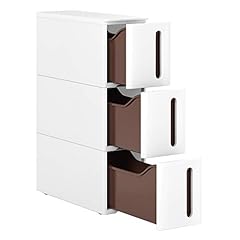 SONGMICS mobiles Nischenregal, schmaler Rollwagen mit 3 Schubladen, ausziehbarer Ablagewagen, Badregal, Küchenschrank mit abnehmbaren Rädern, PP, platzsparend, 45 x 17 x 63 cm, Weiß KFR07WT