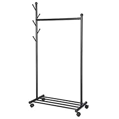 SONGMICS Garderobenständer Kleiner Kleiderständer Kleiderstange mit Schuhablage und Rollen Metall Schwarz 85,2 x 174 x 42,5 cm (B x H x T) HSR06B