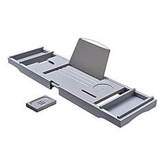 SONGMICS ausziehbare Badewannenablage aus Bambus, Badewannenbrett, Badewannen Ablagen mit Getränkehalter, Buchstütze, Seifenhalter 75-109 x 4,5 x 23 cm (B x H x T) Grau BCB88GY