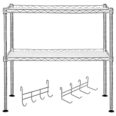 SONGMICS Küchenregal Mikrowellenhalter Super Stahlqualität, Breite 60 cm, belastbar mit max. 80 kg, Gewürzregal Verchromt, mit 8 Haken 2 Ablagen für kleine Küchen LGR20C