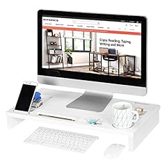 SONGMICS Monitorständer aus Bambus, ergonomischer Bildschirmständer mit Handyschlitz, Bildschirmerhöhung, für Computer, Laptop, Schreibtisch-Organizer, 60 x 30,2 x 8,5 cm, weiß LLD201WT