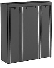 SONGMICS XXL Kleiderschrank Faltschrank Stoffschrank mit Kleiderstange DREI hochrollbare Türen Campingschrank 175 x 150 x 45 cm Grau LSF03G