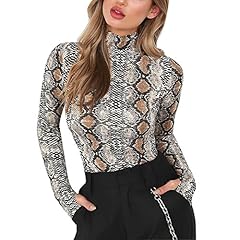 Petalum Damen Bodysuit Herbst Langarm Schlangenmuster Body Rollkragen Figutbetont Shirt Schlangenhaut Bodysuit Stretch Club Wear Basic Overalls Oberteil Playsuit