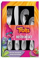 Trolls Besteckset 4 Teiliges Set mit aufwändiger Prägung aus Edelstahl in Premiumqualität rostfrei
