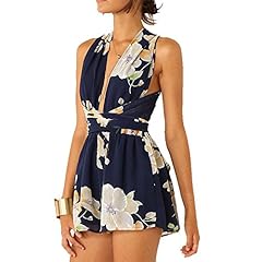 Jumpsuit Chiffon, Sondereu Hohe Taille kurz Overall Ärmellos V-Ausschnitt Kreuz Bandage Blumen Rückenfrei Schulterfrei Playsuit Bodysuit