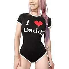 LittleForBig Erwachsene Baby Einteiler Windel-Liebhaber (ABDL) Druckknöpfe im Schritt Strampler - I Love Daddy-Muster Schwarz XXXXL