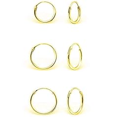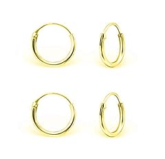 DTPsilver - Damen - Klein Creolen - Ohrringe 925 Sterling Silber und Gelb Vergoldet Set Paare 3 - Dicke 1.5 mm - Durchmesser 8, 10, 12 mm