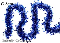 3m Weihnachtsgirlande Ø 8cm mit Sternen (blau) // Silvester Karneval Weihnachten Deko Christbaumschmuck Girllande Weihnachtsbaum Lametta 80mm