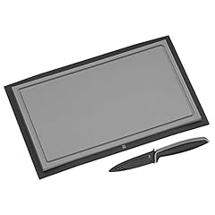 WMF Touch Schneidebrett, Set 2-teilig, Tranchierbrett mit Saftrille Allzweckmesser, mit Schutzhülle, Spezialklingenstahl, antihaftbeschichtet, Kunststoff klingenschonend, schwarz