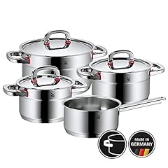WMF Premium One Topfset 4-teilig, Cromargan Edelstahl poliert, Töpfe mit Metalldeckel, Topf Induktion, Innenskalierung, Dampföffnung, unbeschichtet