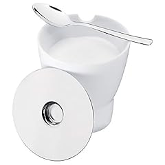 WMF Barista Zuckerdose mit Löffel, 130g, Porzellan, Cromargan Edelstahl poliert, Löffel- & Schüttöffnung, für Streu- und Würfelzucker