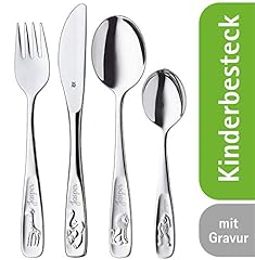 WMF Kinderbesteck, Namensgravur Tiere 4-teilig, ab 3 Jahre, Cromargan Edelstahl poliert, spülmaschienengeeignet, mit Gravur, Taufgeschenke, Geschenke zur Taufe, Kinderbesteck mit Namensgravur