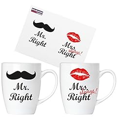 BRUBAKER "Mr. Right & Mrs. Always Right Tassen Set aus Keramik - Grußkarte und Geschenkpackung
